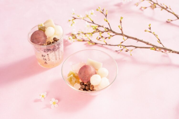 ・販売期間:2026年3月4日(水)~2026年4月5日(日) ・650円(税込) ・販売店舗:船橋屋全店、船橋屋こよみ全店、オンラインショップ 桜の葉を練りこんだ風味豊かな桜寒天に、桜餡と白玉を添えました。 白蜜のやさしい甘さで春を楽しめる一品です。