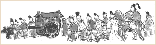 4年に一度の大祭の時に御鳳輦を初め平安朝絵巻を再現した華やかな長い行列を仕つらえ渡御(とぎょ)いたします。